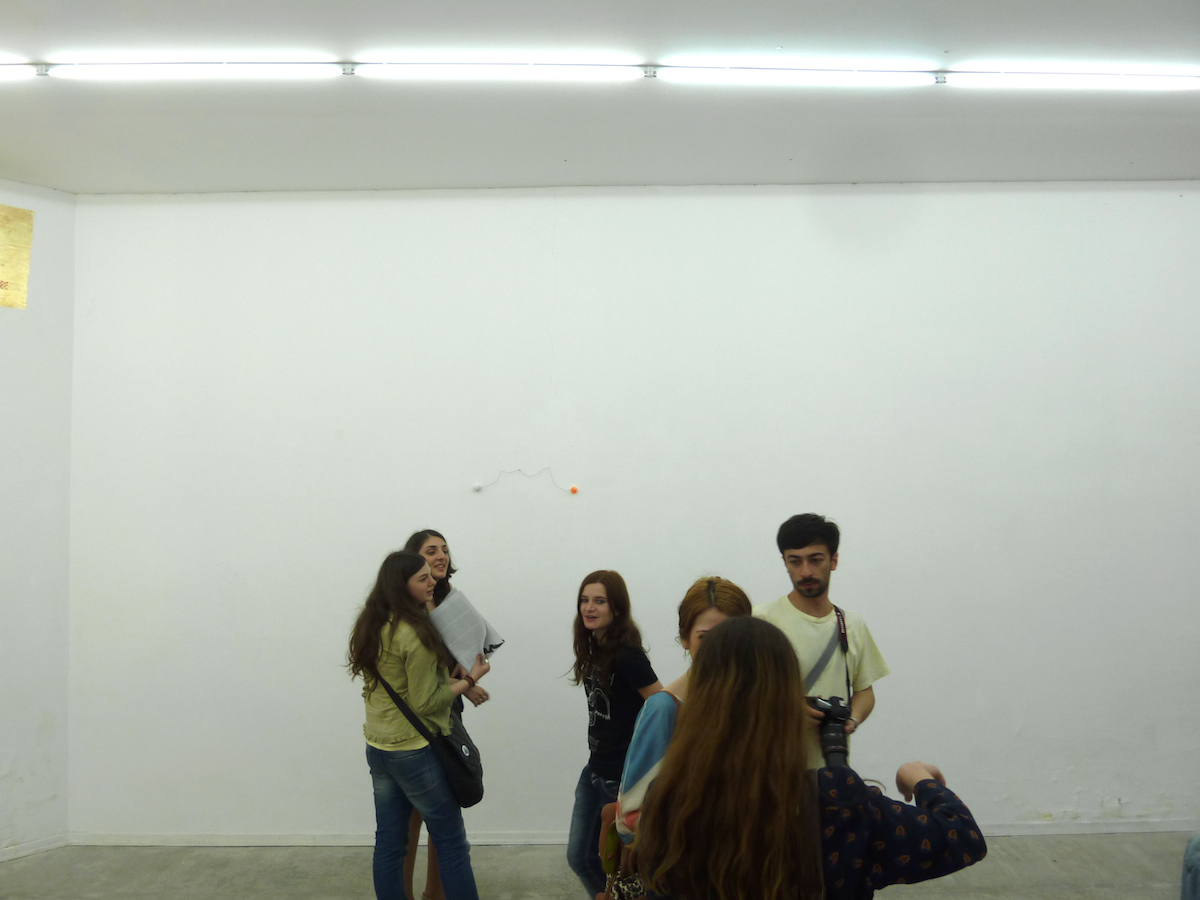The Near Future is a Starship exhibition for the Center of Contemporary Art in Tbilisi/Georgia. In this exhibition the near future will be depicted in various spheric models and abstractions. Since nobody can remember the future, it will be necessary to draw upon the past, especially on short term memory, and construct a new image by layerings. The exhibition will be produced in Tbilisi, abstractions will thus be from Georgia, while the main reflections will be from Berlin. They concern ways of social movement, and what happens when people are positioned upon another and start a common artistic practice, as happened with Starship and other projects the main protagonists were involved in. The Near Future therefore is also an exhibition about co-operation and the possibilities to rethink the thoughts of others. Thus The Near Future must also be an exhibition about abstraction and the bars, necessarily put into communication.