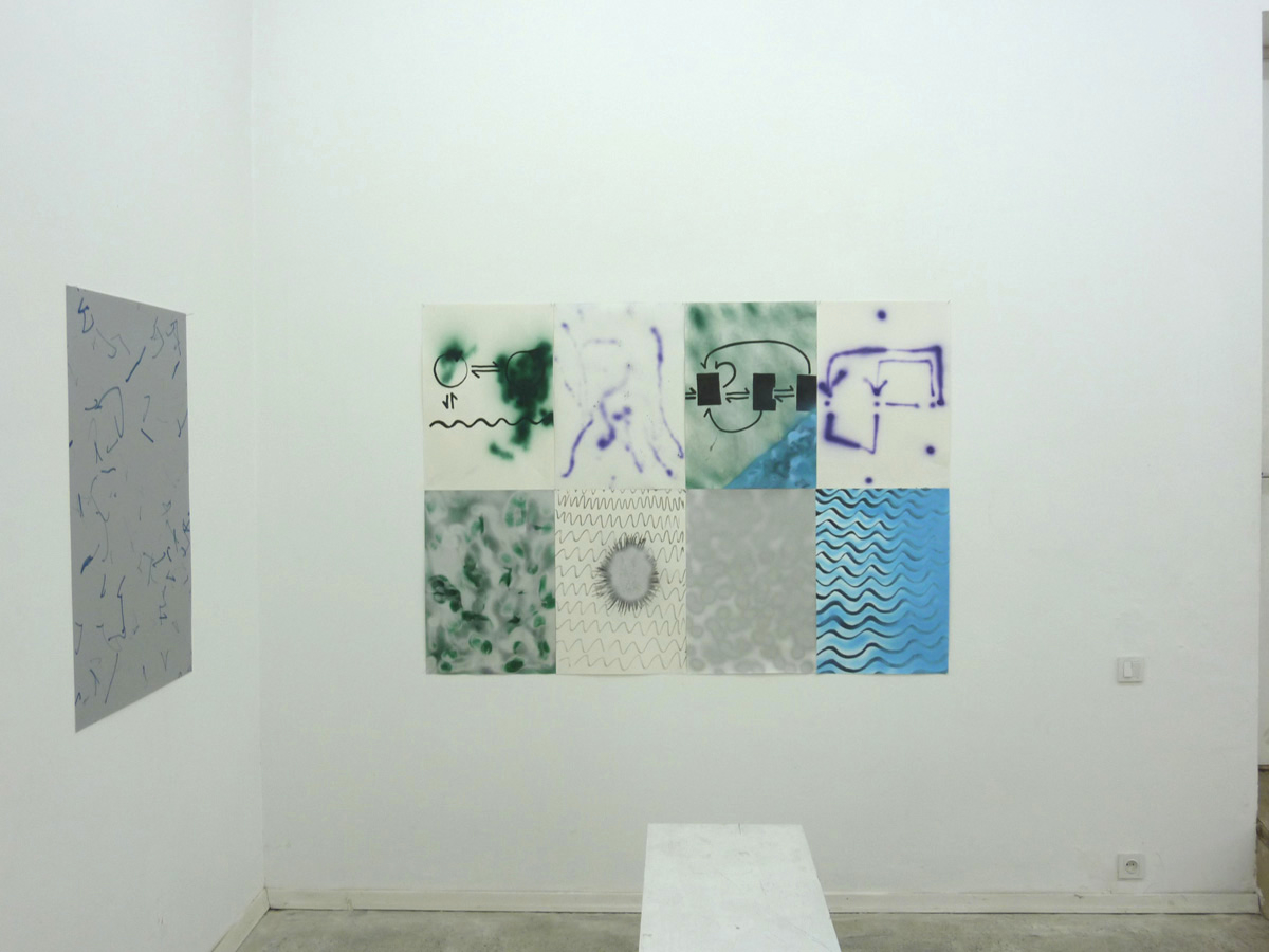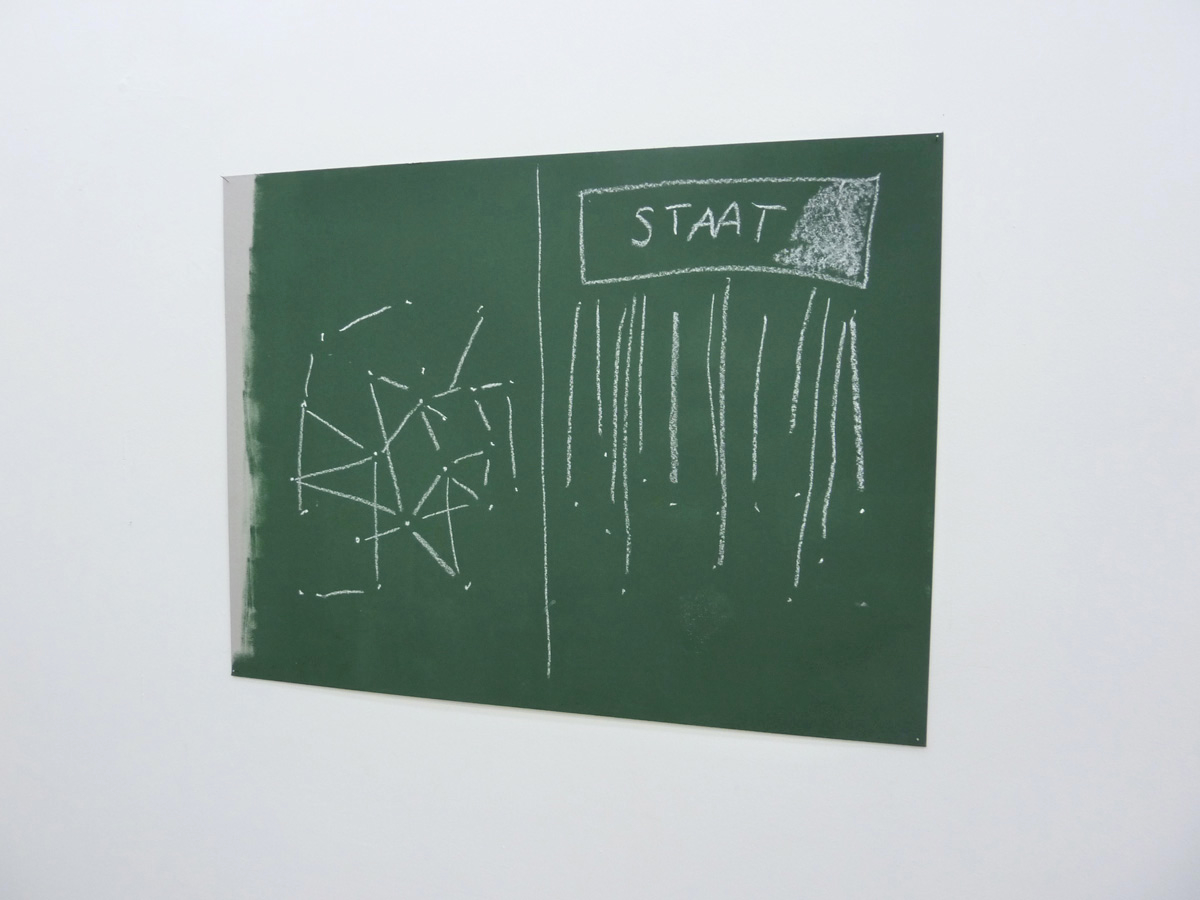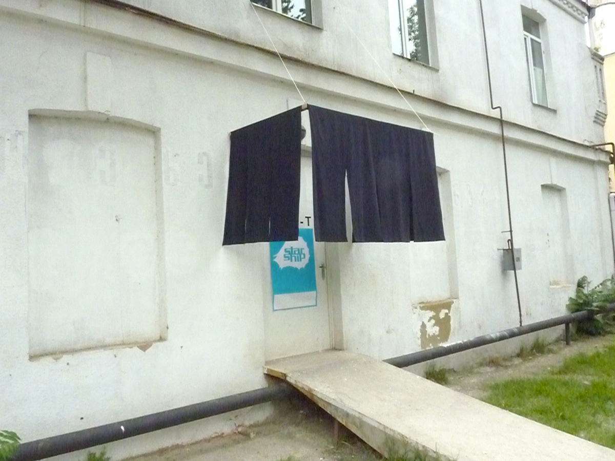 The Near Future is a Starship exhibition for the Center of Contemporary Art in Tbilisi/Georgia. In this exhibition the near future will be depicted in various spheric models and abstractions. Since nobody can remember the future, it will be necessary to draw upon the past, especially on short term memory, and construct a new image by layerings. The exhibition will be produced in Tbilisi, abstractions will thus be from Georgia, while the main reflections will be from Berlin. They concern ways of social movement, and what happens when people are positioned upon another and start a common artistic practice, as happened with Starship and other projects the main protagonists were involved in. The Near Future therefore is also an exhibition about co-operation and the possibilities to rethink the thoughts of others. Thus The Near Future must also be an exhibition about abstraction and the bars, necessarily put into communication.