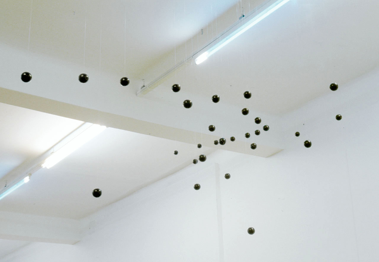 wooden spheres on acrylic wire, variable form, 2003